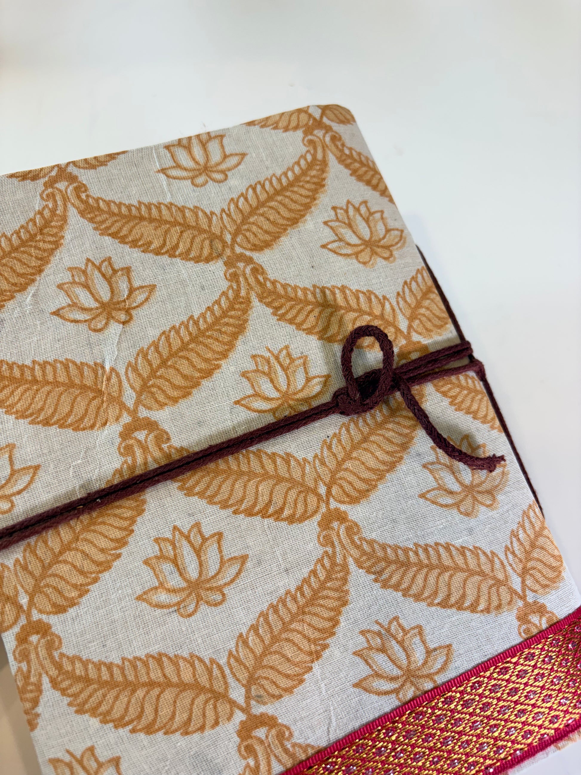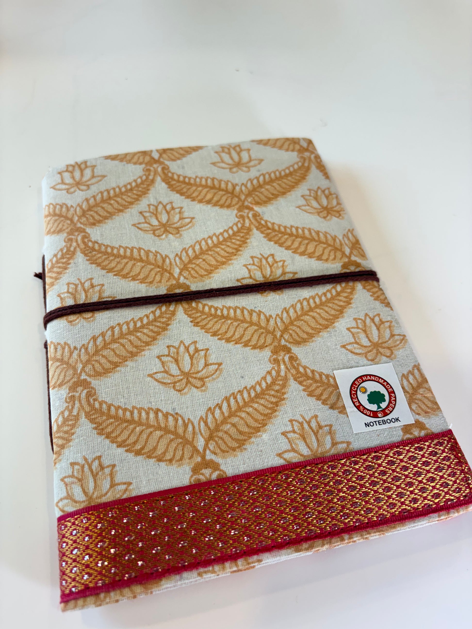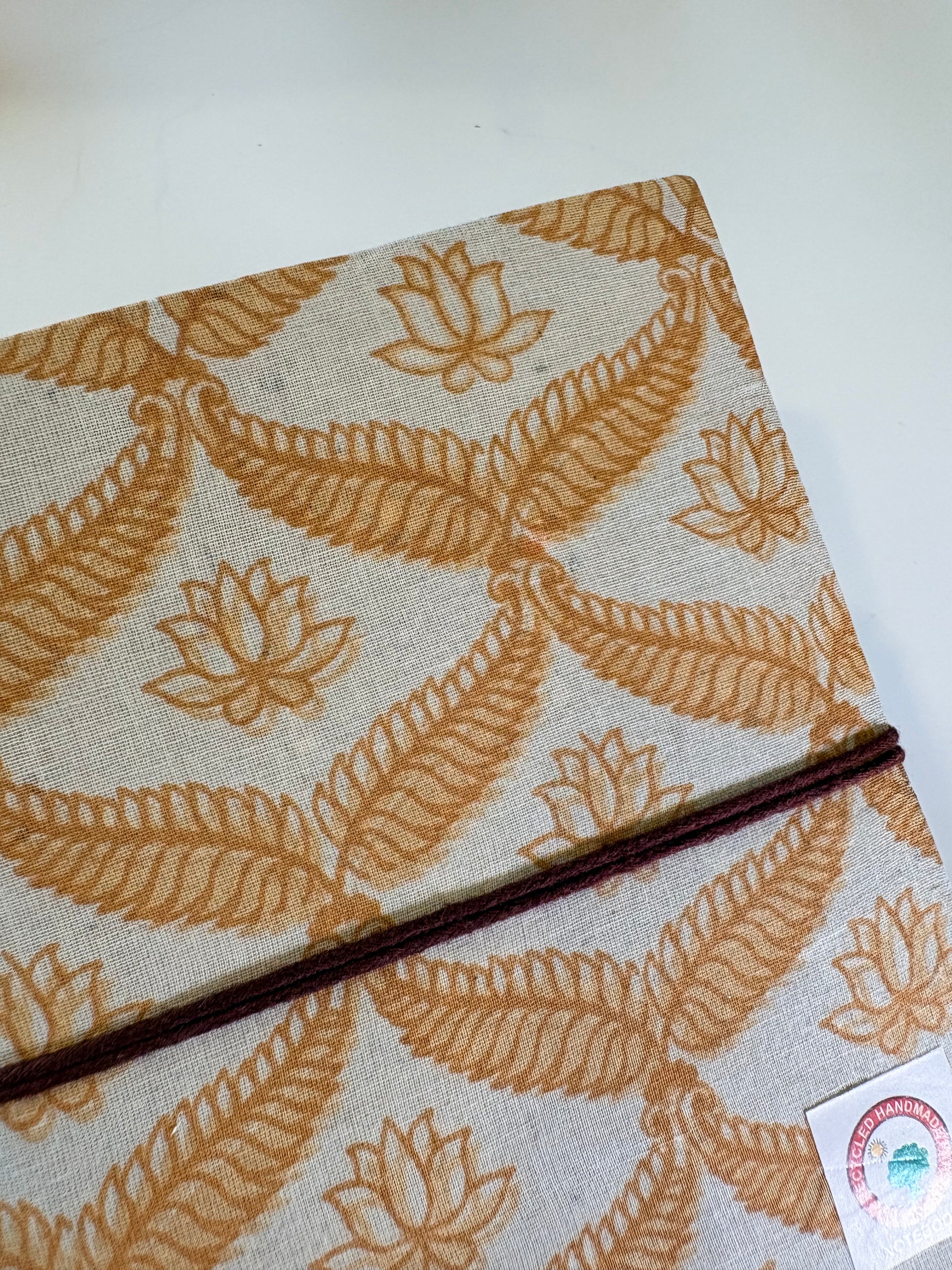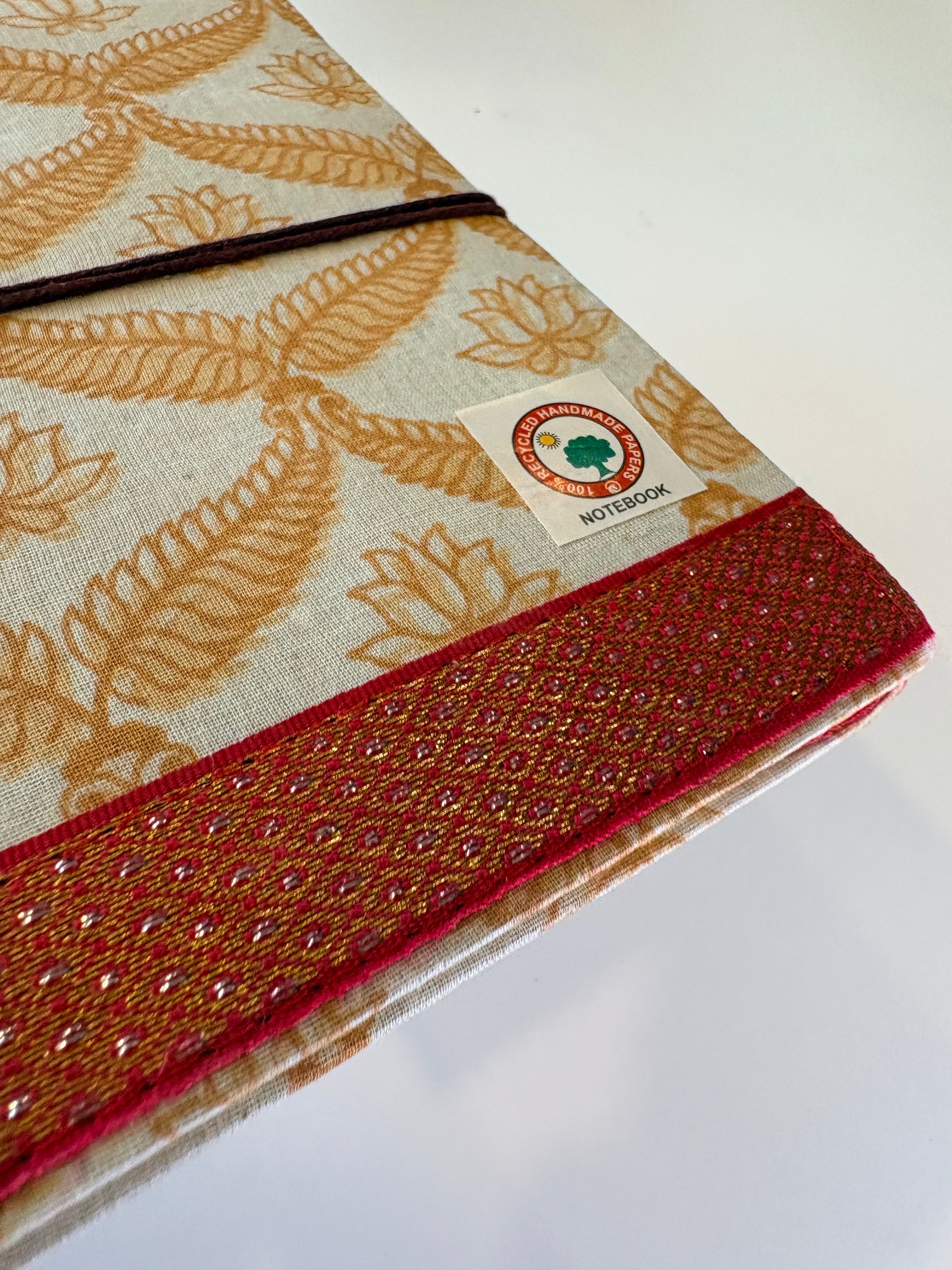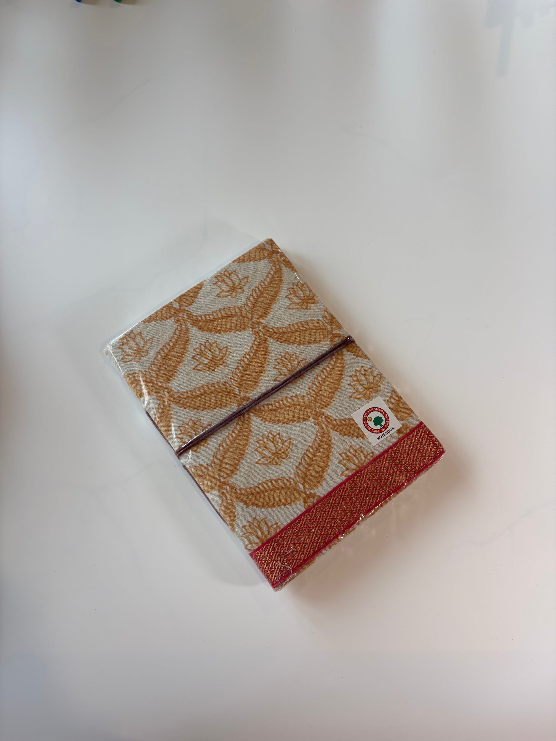 Handmade with care using 100% recycled paper, each journal is wrapped in artisanal block-printed fabric.
