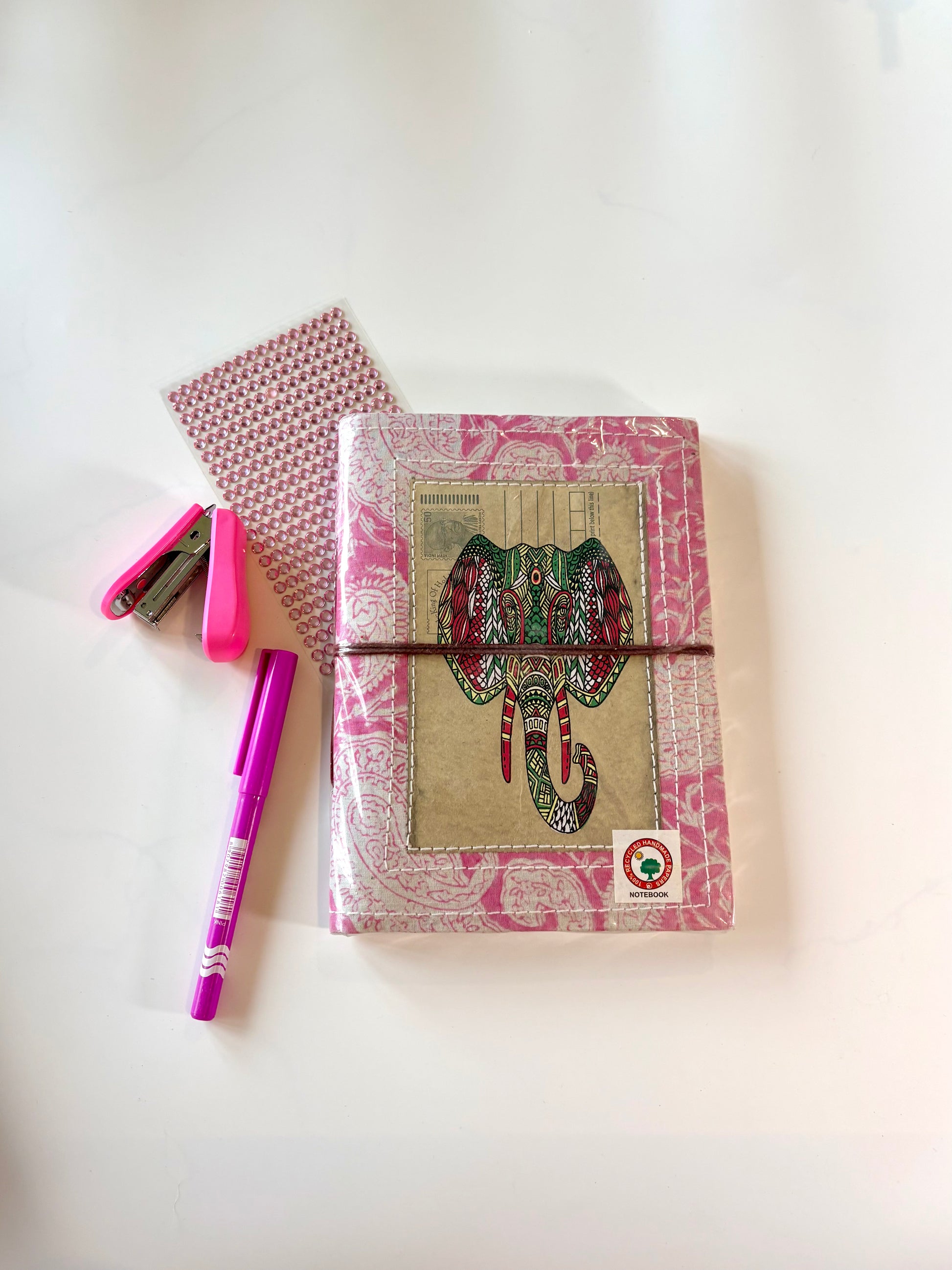 Handmade with care using 100% recycled paper, each journal is wrapped in artisanal block-printed fabric.