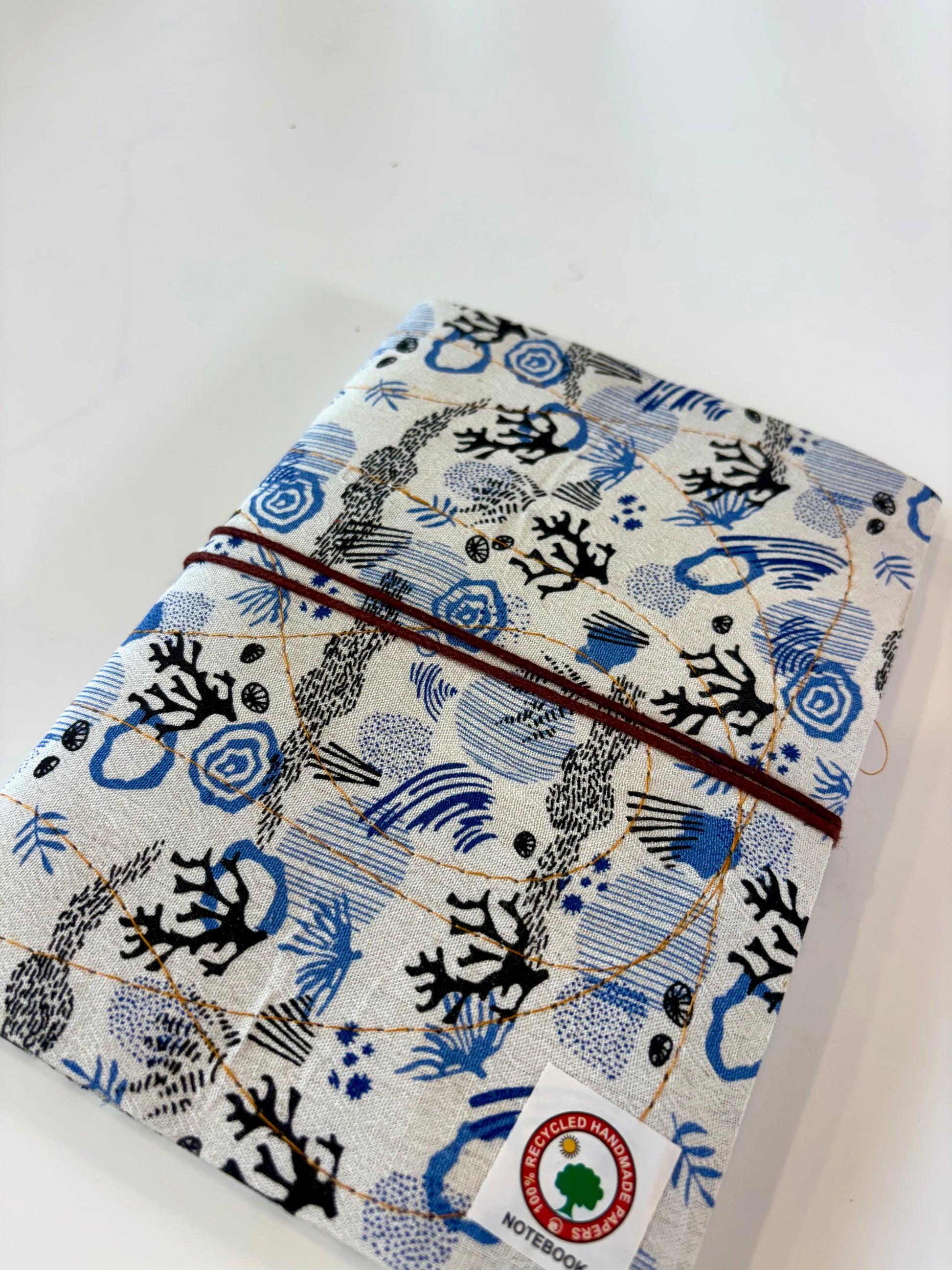 Handmade with care using 100% recycled paper, each journal is wrapped in artisanal block-printed fabric.