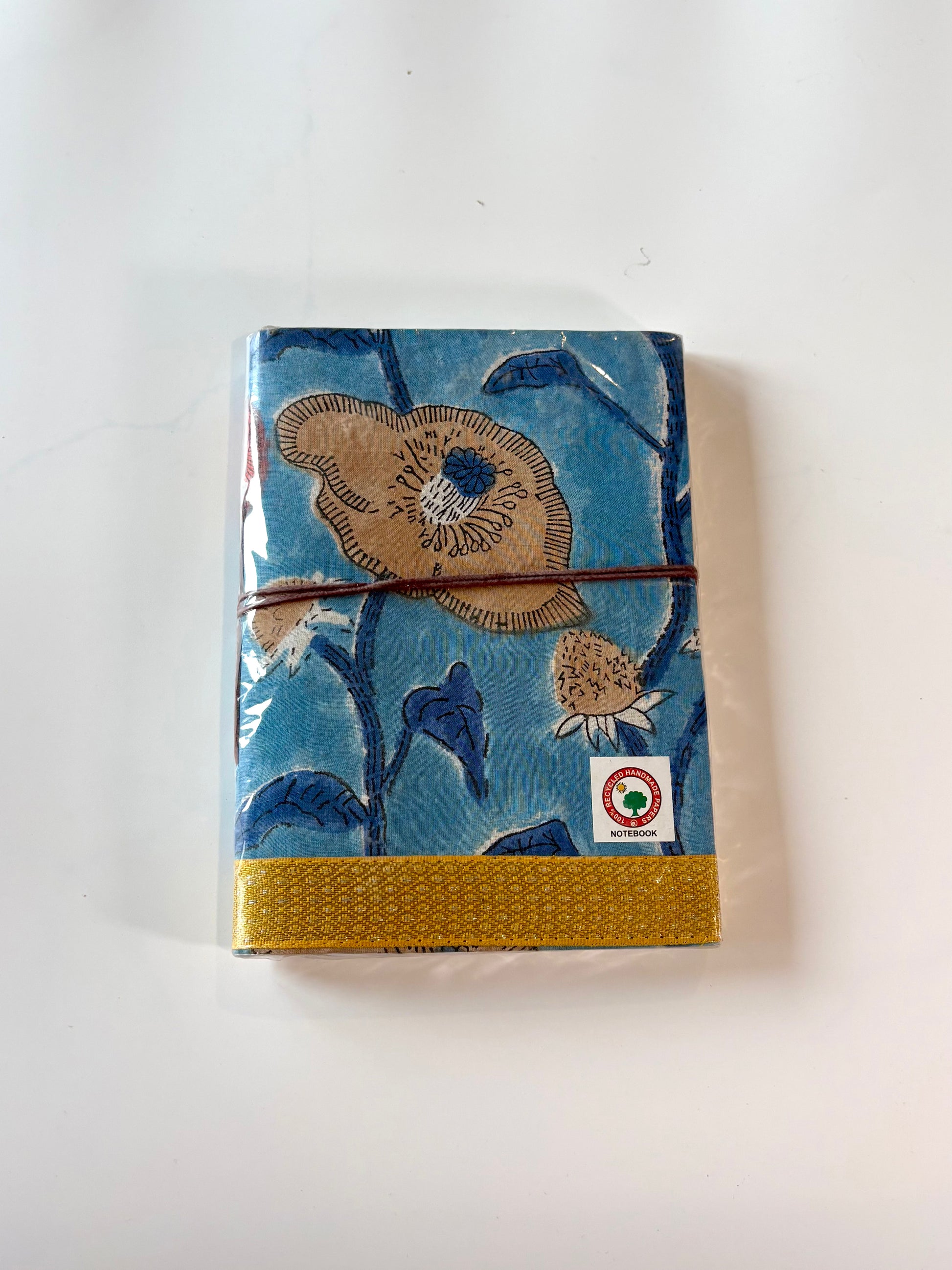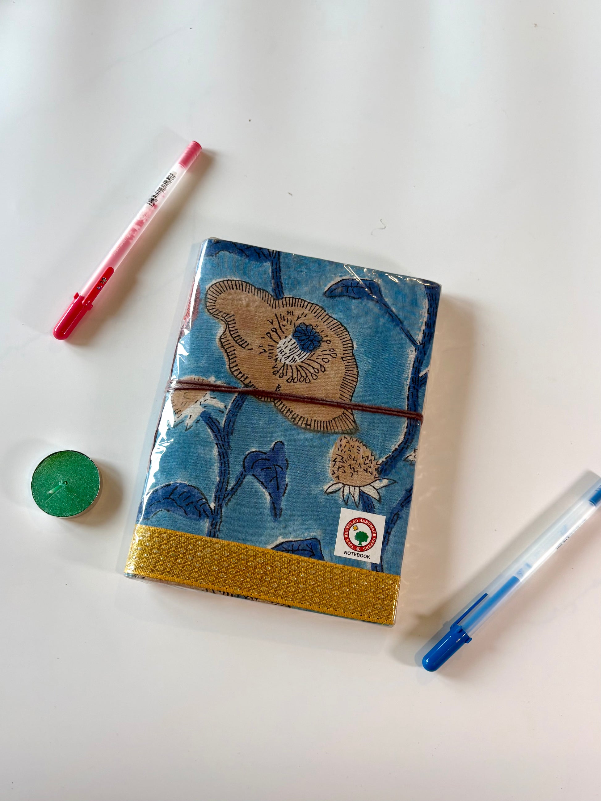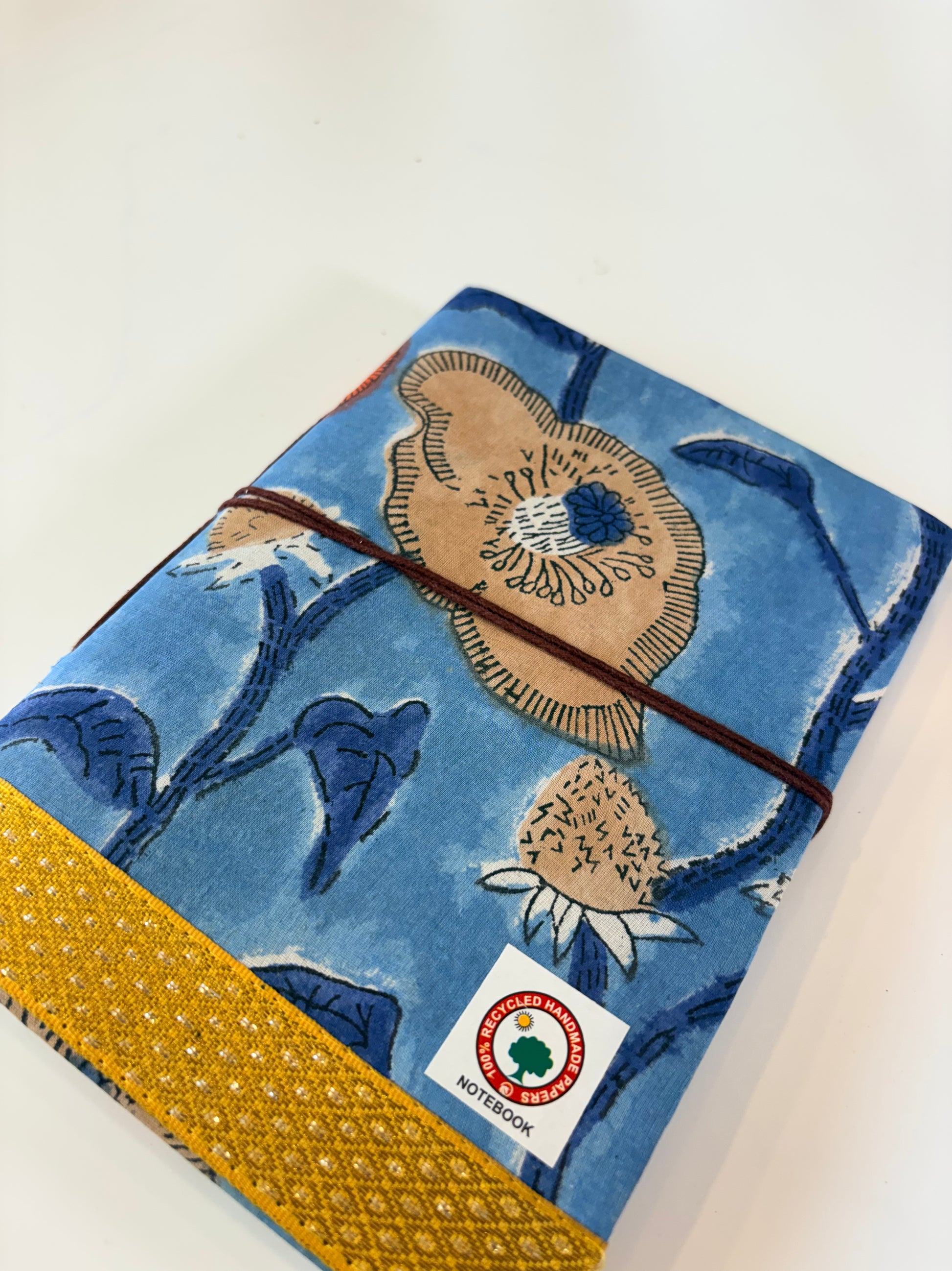 Handmade with care using 100% recycled paper, each journal is wrapped in artisanal block-printed fabric.