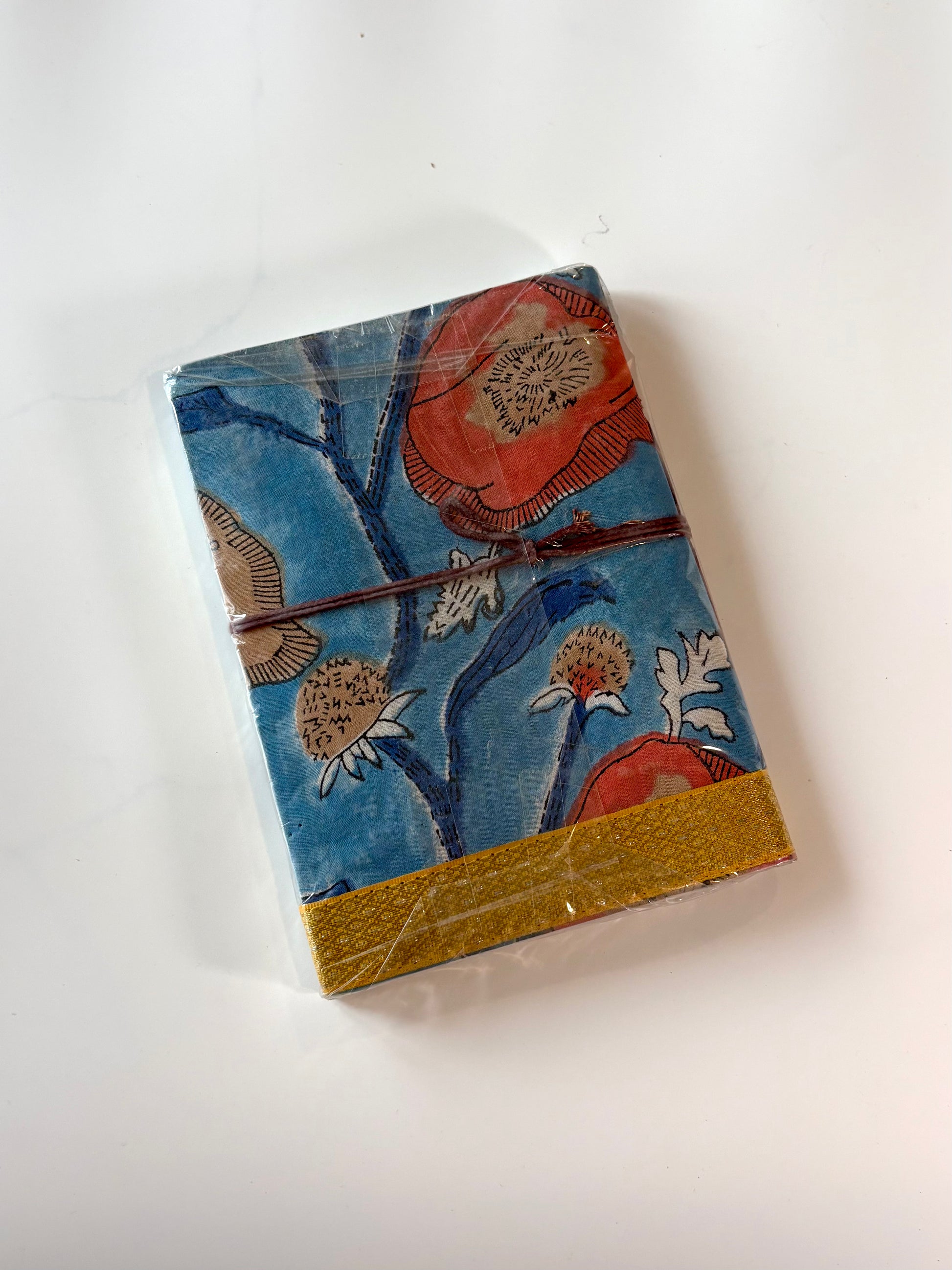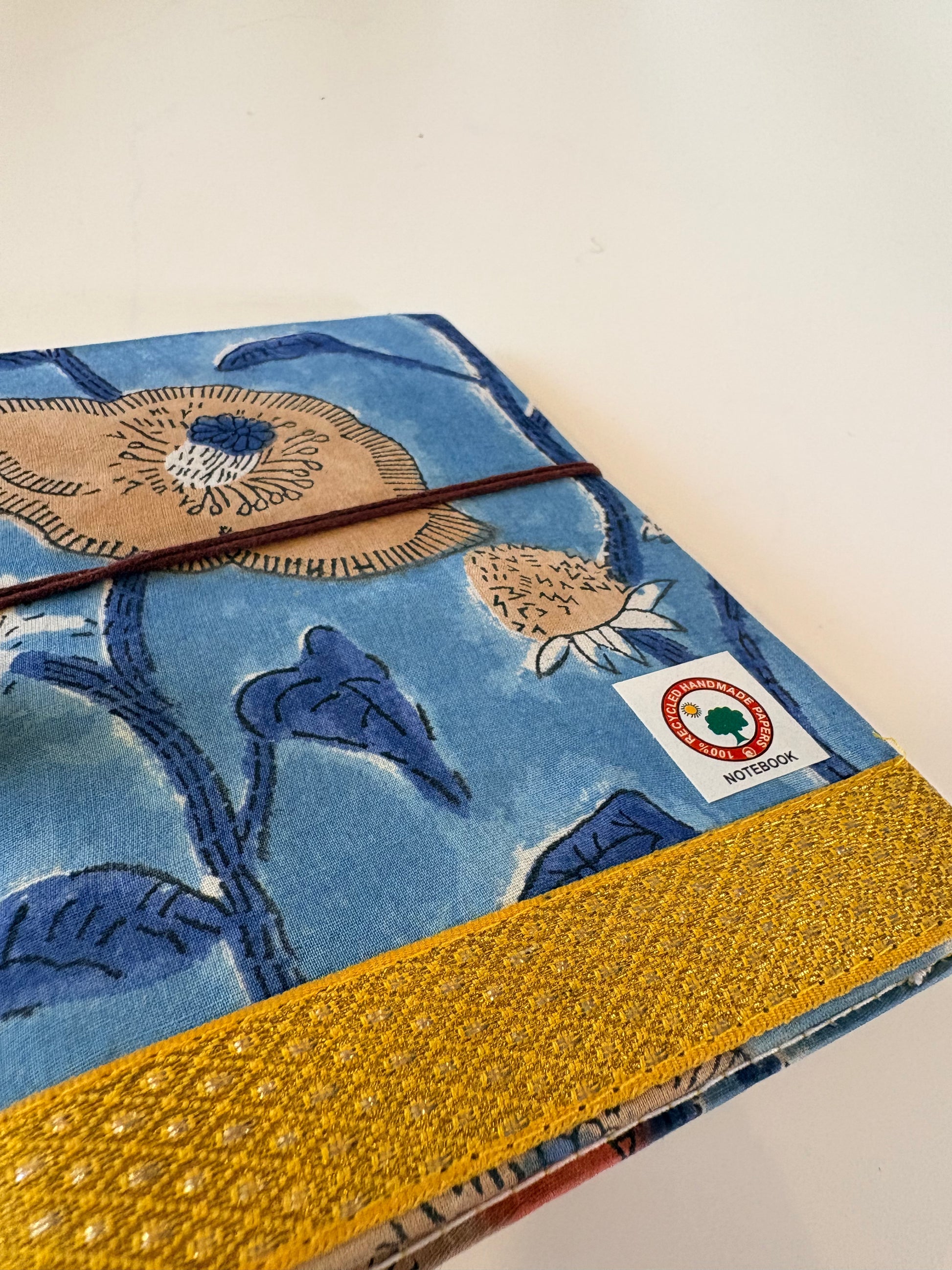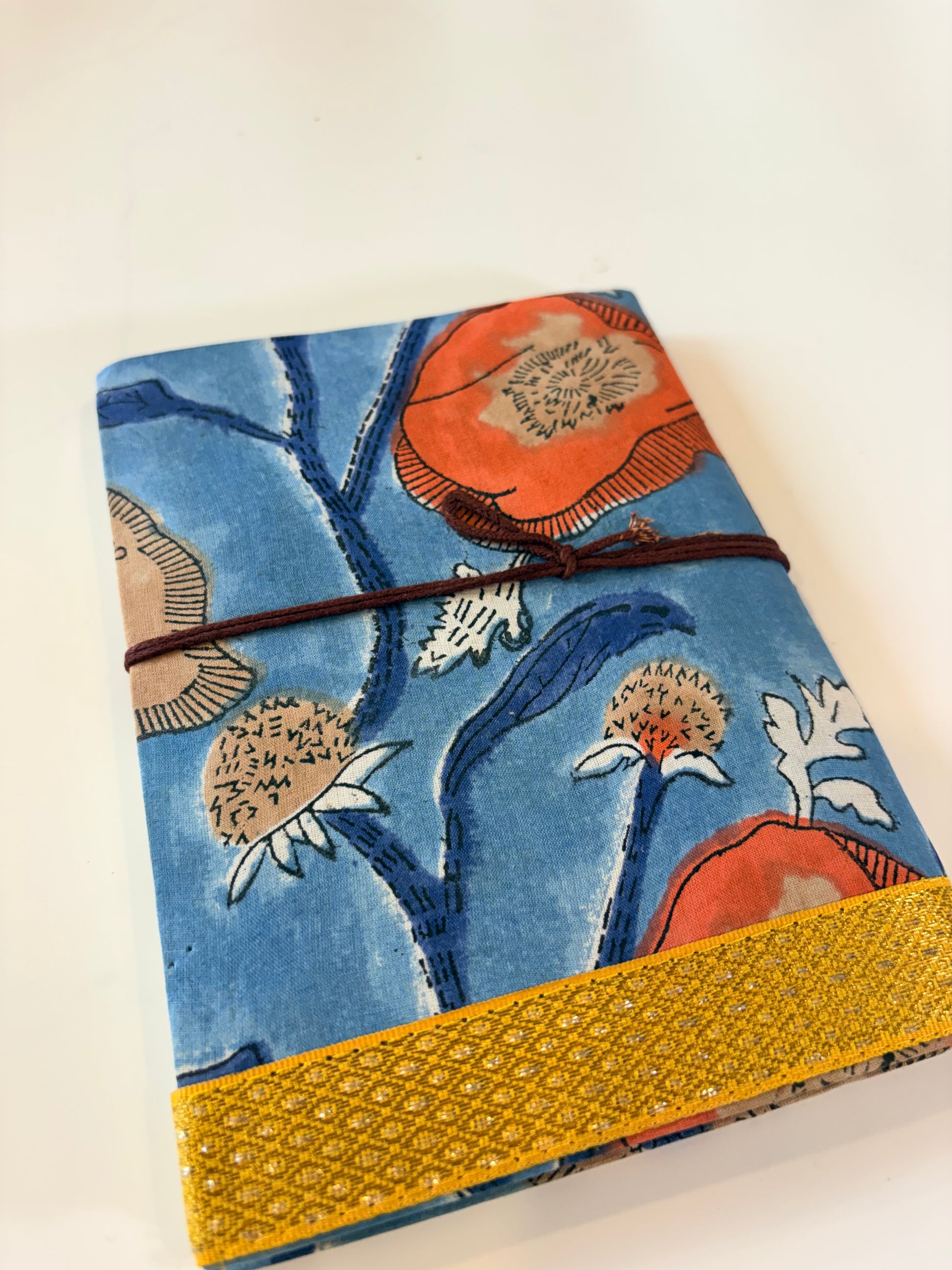Handmade with care using 100% recycled paper, each journal is wrapped in artisanal block-printed fabric.