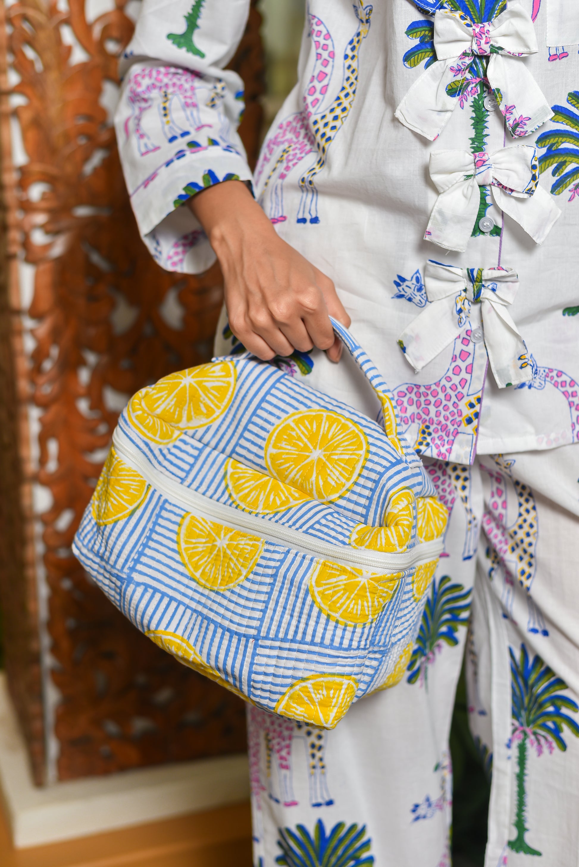Handcrafted in pure cotton with vibrant block prints, this vanity bag is designed to keep your beauty and travel essentials organised in style. Perfect for both everyday use and travel.