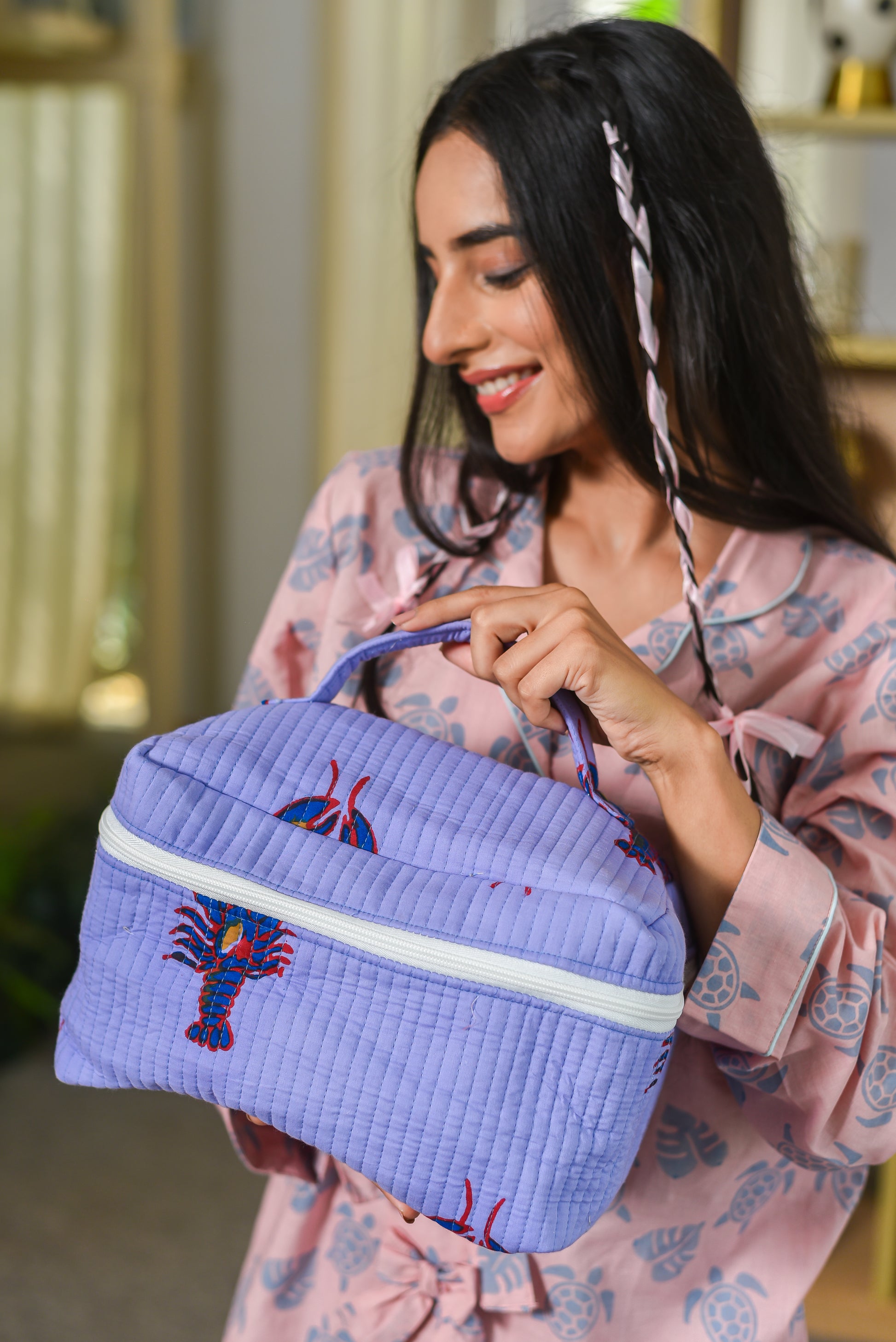 Handcrafted in pure cotton with vibrant block prints, this vanity bag is designed to keep your beauty and travel essentials organised in style. Perfect for both everyday use and travel.