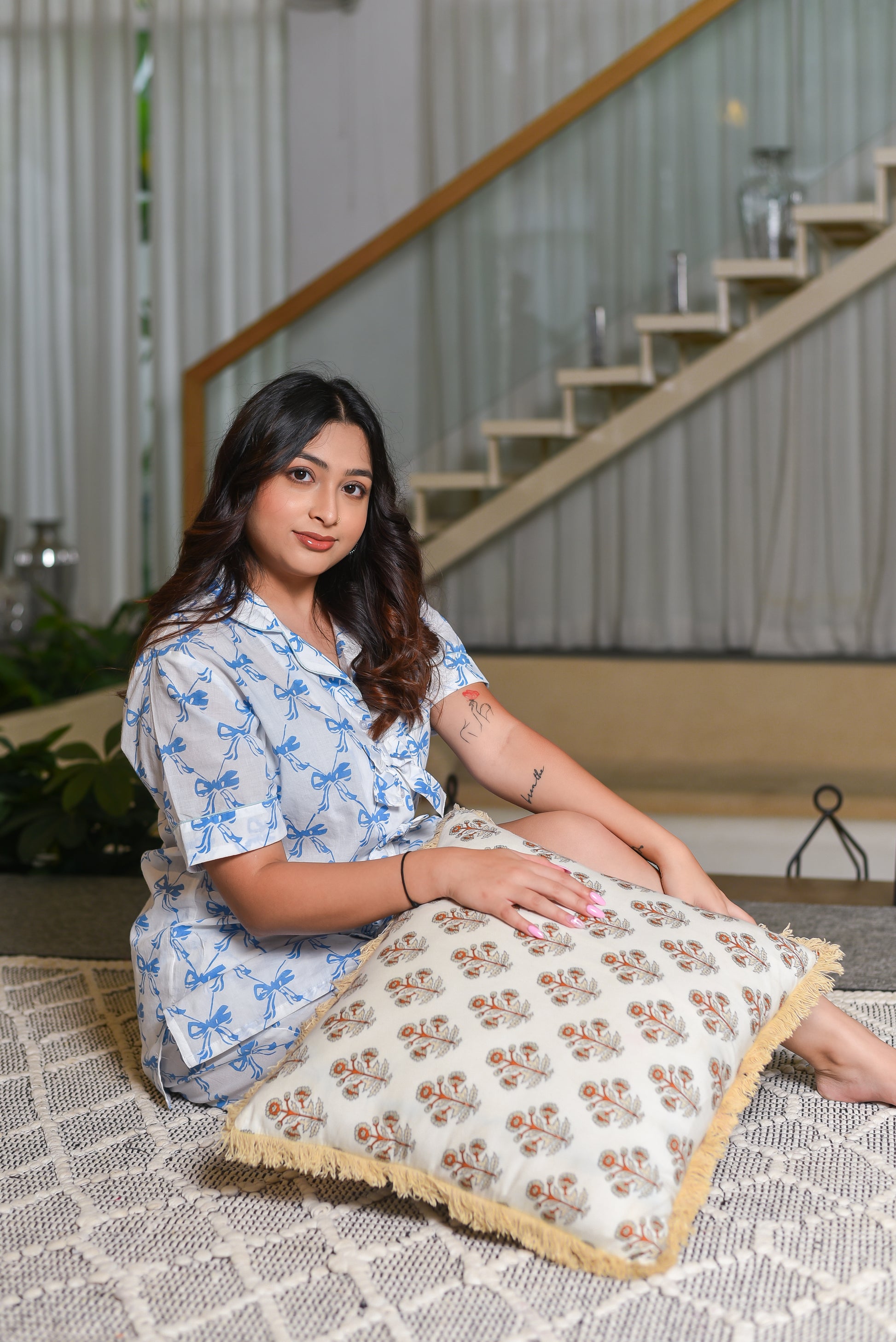 Handcrafted in breathable cotton using traditional block printing, this Pyjama set blends comfort with charm.